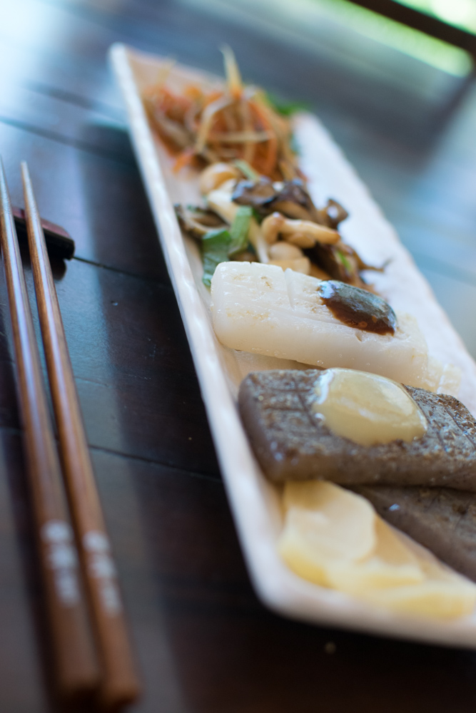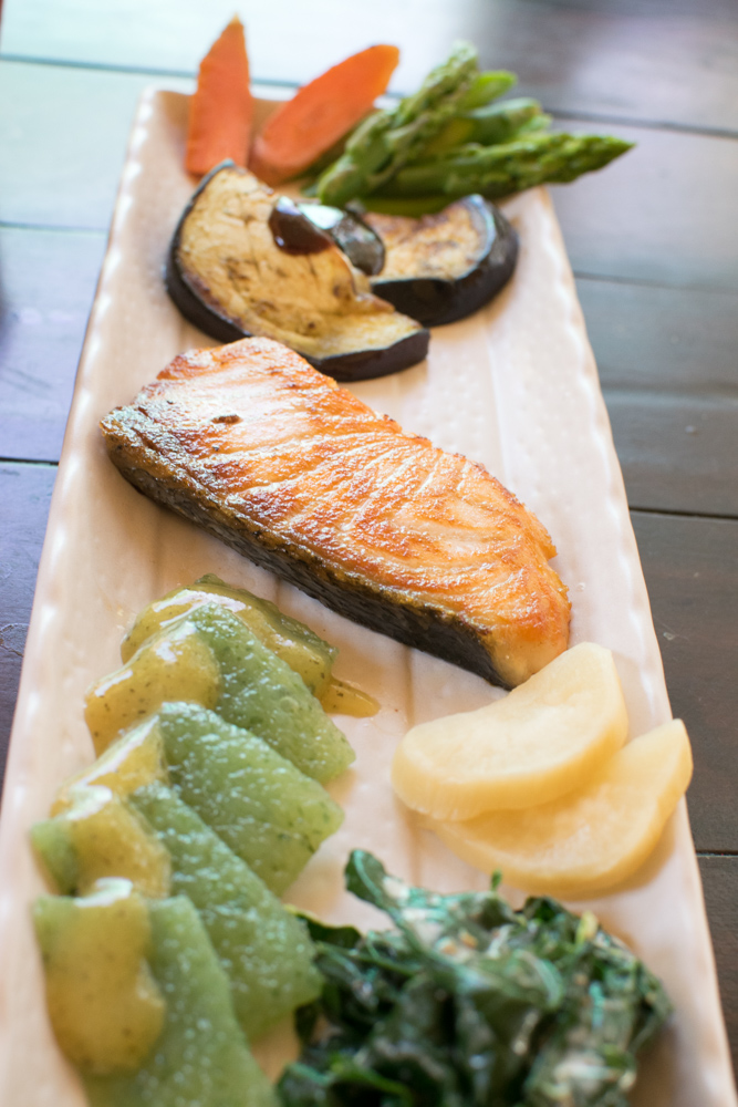 - Salmon, Grilled Eggplant, Sashimi Konnyaku